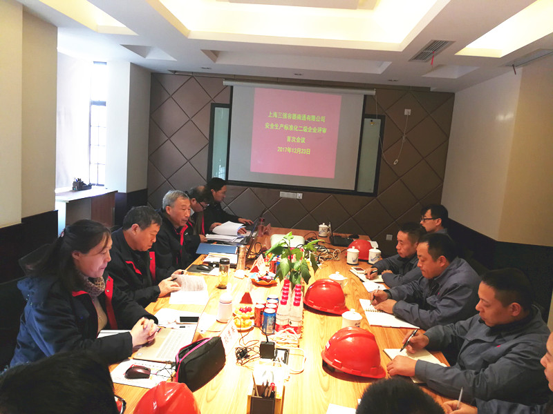 上海三强容器南通有限公司创建安全生产标准化二级企业,经策划、准备、实施运行和评审申请,江苏省安全生产协会委派以吴祖培先生为组长的五人评审组,于2017年12月23日至12月24日对本公司安全生产标准化管理体系运行情况进行了现场评审。评审组采用资料核对、抽查考核和现场查证等方法,对各考评项目(基础管理、机械、燃爆热工、电气、作业环境与职业健康)分别进行了细致检查和评审,最终,评审组做出结论:上海三强容器南通有限公司符合安全生产标准化二级企业要求。评审顺利通过。