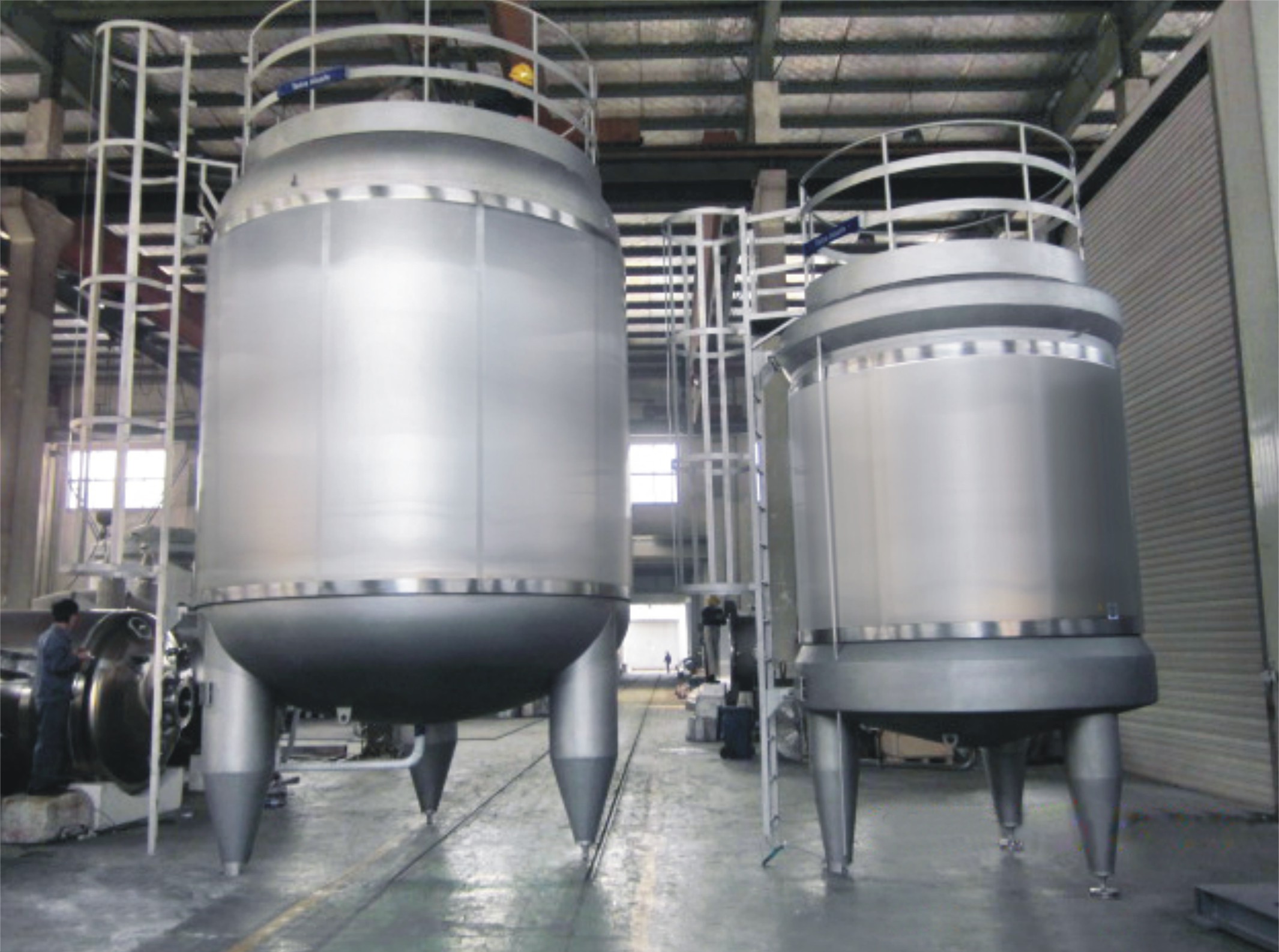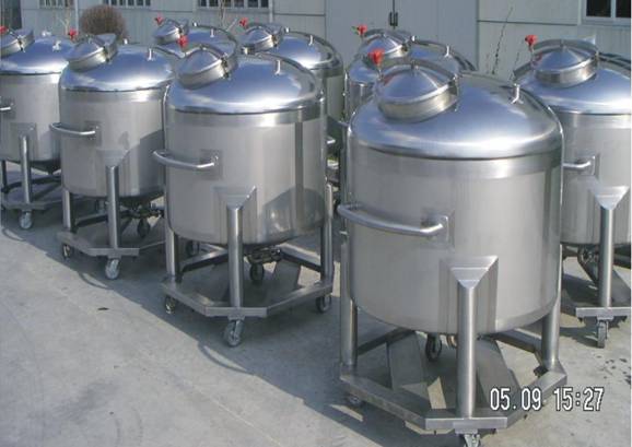 存储或盛装气体、液体等介质的设备,广泛用于食品、化工、制药等行业。储罐的结构形式主要有立式储罐和卧式储罐。内胆材料主要采用316L或304。罐体根据工艺要求采用单层或保温结构。保温材料选用聚氨酯发泡、岩棉或玻璃棉。罐体接口主要采用卡箍、活接或法兰连接。储罐主要管口有:人孔、呼吸口、进出液口、CIP清洗口、温度计、取样阀、液位计、液位传感器、温度传感器、视镜、灯视镜等。容积可根据客户实际需要进行设计、制造。